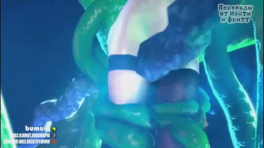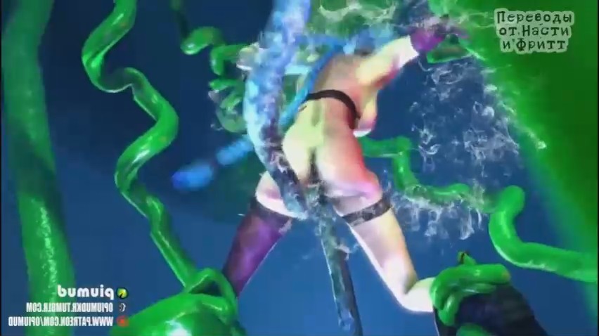 Похотливая хентай-девушка с синими волосами на этот раз стала настоящей секс-рабыней, которая была обездвижена. Шлюшка получает себе щупальца в свои дырочки, от чего получает бурные оргазмы. Этими же тентаклями она и связана, что не дает ей возможности пошевелиться. Она и не хочет этого делать, ведь помимо смачного траха ей еще и лижут маленькие гномы, что дает ей дополнительные приятные ощущения. 3D телка в мультяшном порно отлично выполняет роль любительницы БДСМ и ловит от этого яркие оргазмы.
