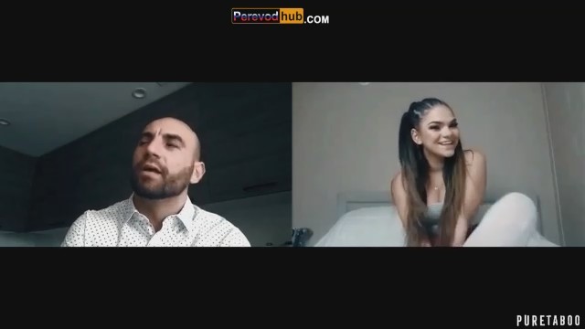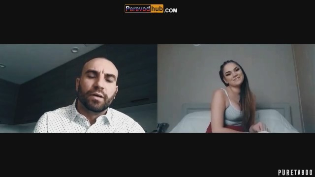 Дерзкая брюнетка общается по видео чату с отчимом, который узнал о ее татуировке. Девушка пытается отмазаться, но хитрый мужчина разводит ее на стриптиз и мастурбацию. Развратница ласкает пальчиками розовую киску стоя на четвереньках. Она пытается отвлечь внимание родственника большими сиськами, сладко постанывая во время проникновения в мокрую письку. Не успевает шалунья получить оргазм, как лысый брюнет признается ей, что записывал на нее компромат для матери, если она не будет слушаться.