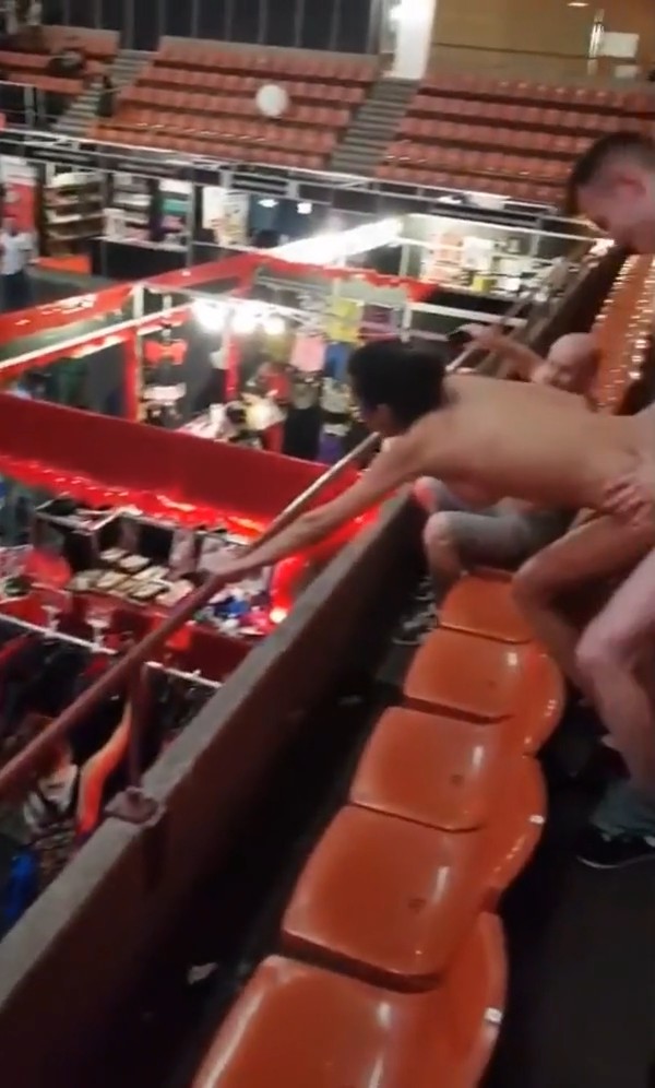 Кто-то боится секса на людях, а вот некоторых это прямо-таки будоражит, и без потока адреналина в мозг от случайных зрителей хуй уже практически не стоит. Все начинается с нудистских пляжей, а заканчивается сюжетом из данного видео. Международная выставка расположена на "поле" внизу, над которыми возвышаются трибуны. И пока народ рассматривает экспонаты внизу, на трибуне сверху, которую видно из любой точки выставки, трахают раком брюнетку, а та орет и привлекает к себе внимание. Народ рядом снимает все на телефон, что только раззадоривает ебыря и тот принимается долбить свою сучку еще сильнее.