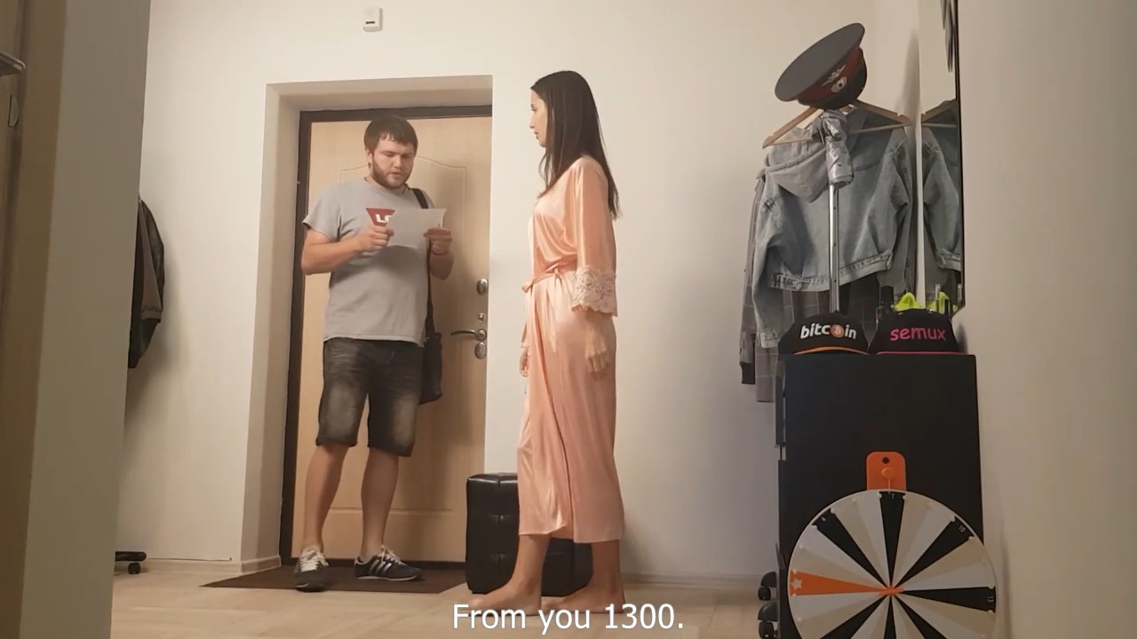 Безумно заманчивое предложение устроила девчонка перед ничего не подозревающим курьером. Потому что наложенный платеж с доставкой на дом - это невероятная лотерея со стороны доставщика. Непонятно, к кому он понесет эту дурацкую посылку, и заплатят ли ему за нее деньги - косяки с расчетами это главная курьерская головная боль. Так и вышло в этом случае, ибо у красивой и стройной девчонки, которая была в одном халатике, была только тысяча рублей, но она "предложила договориться", и халат с нее легко упал на пол. А что же было дальше - смотрите сами.